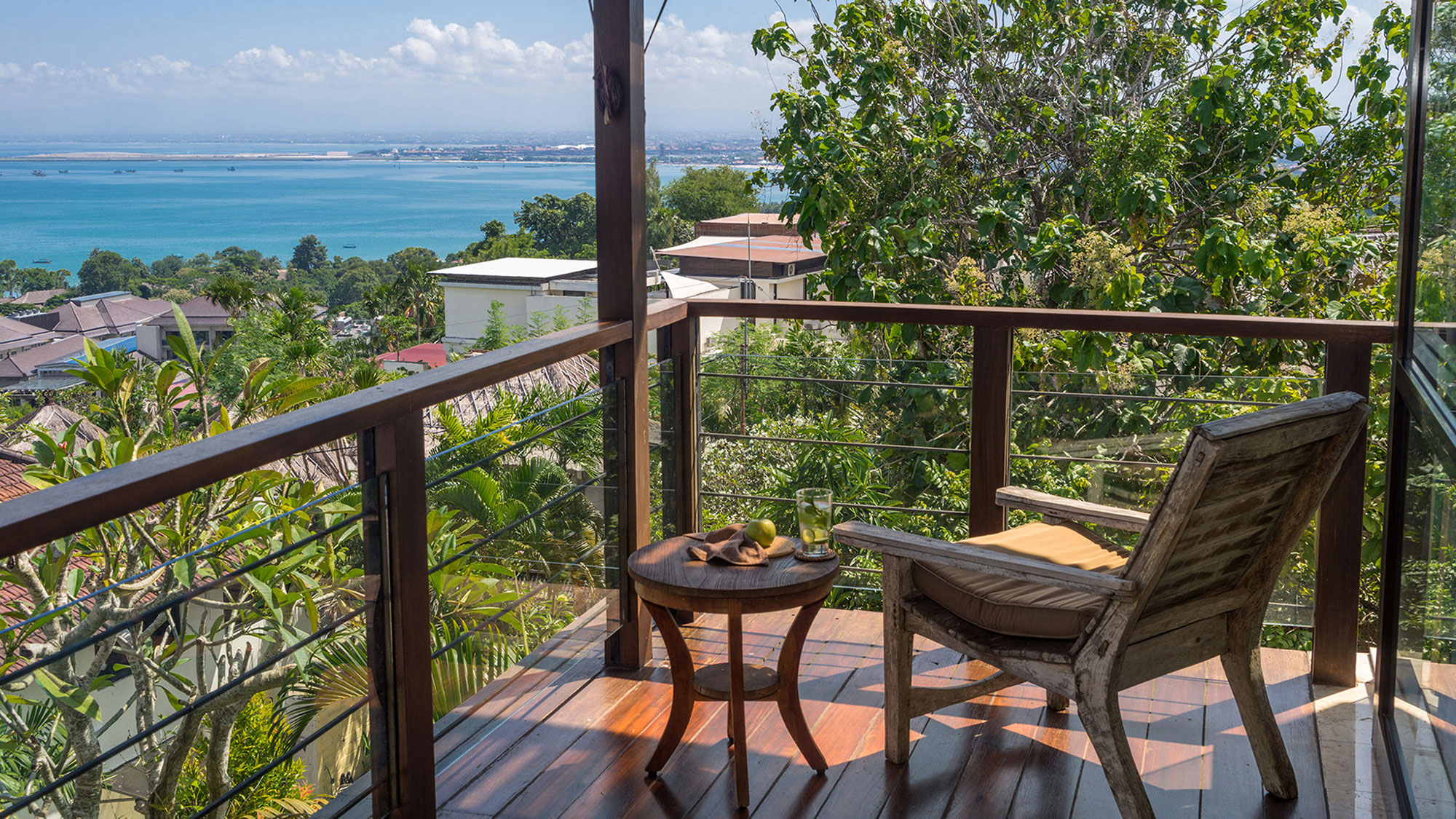 All five of the generously sized bedrooms at Villa Grand Cliff Nusa Dua are blessed with glorious ocean views. All have toe-pleasing timber floors, and each is equipped with air-conditioning, a wall-mounted 43-inch international-channel TV and Blu-ray DVD player, a safe deposit box, top-class amenities and superior comforts. Four are furnished with king beds and one with twin beds.