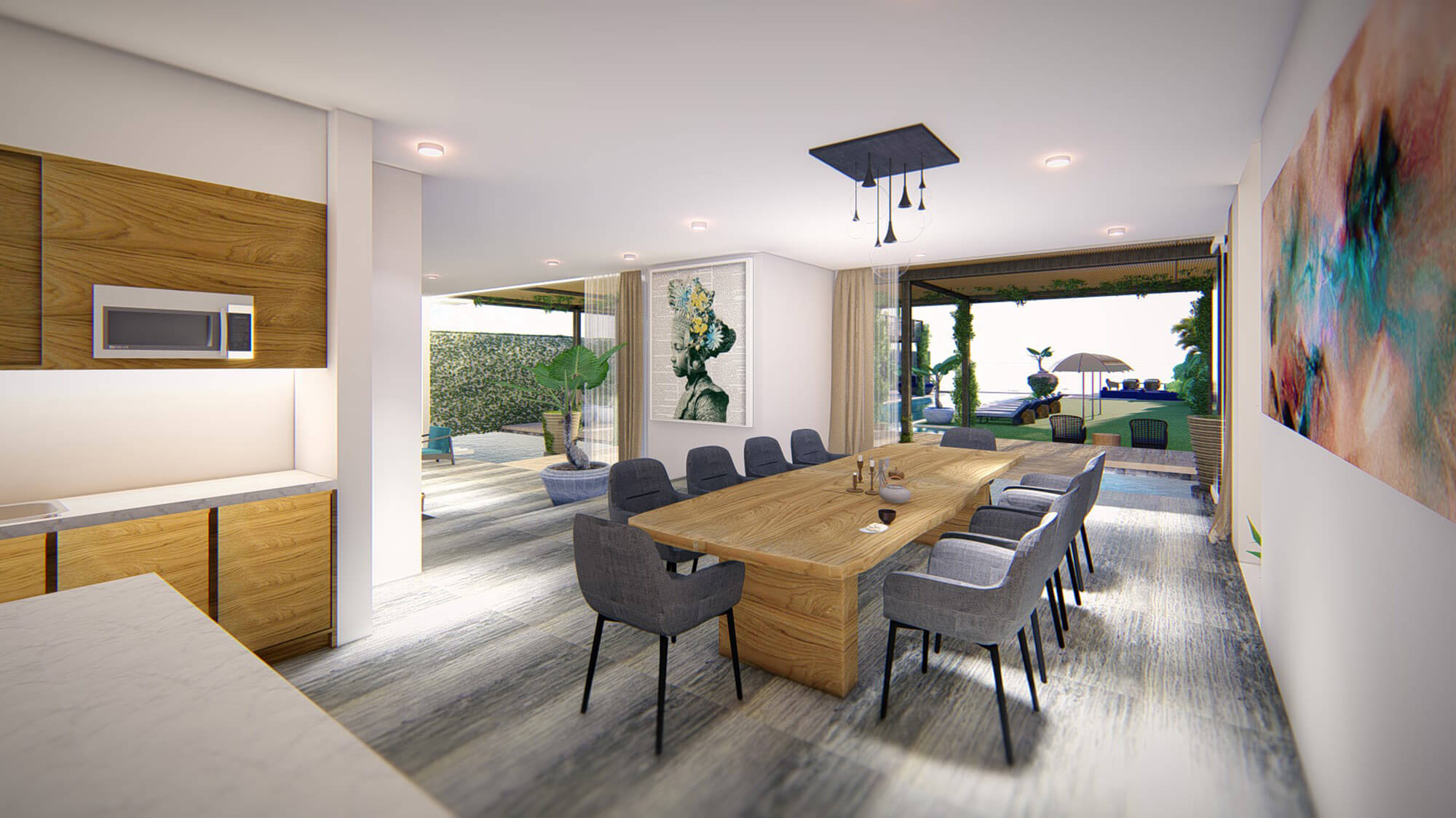 This beachfront Seminyak villa is a dream for those who love to entertain, with a fully staffed commercial kitchen, a preparation kitchen, wine room, bar and matred station by the dining room.