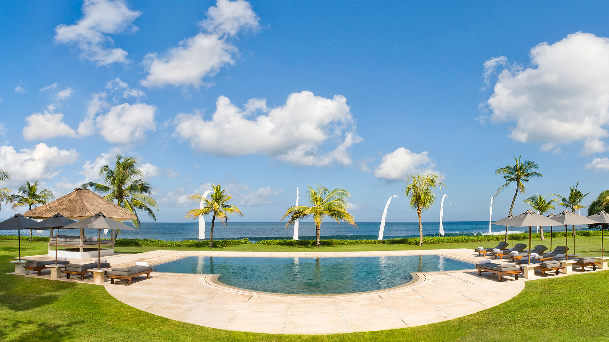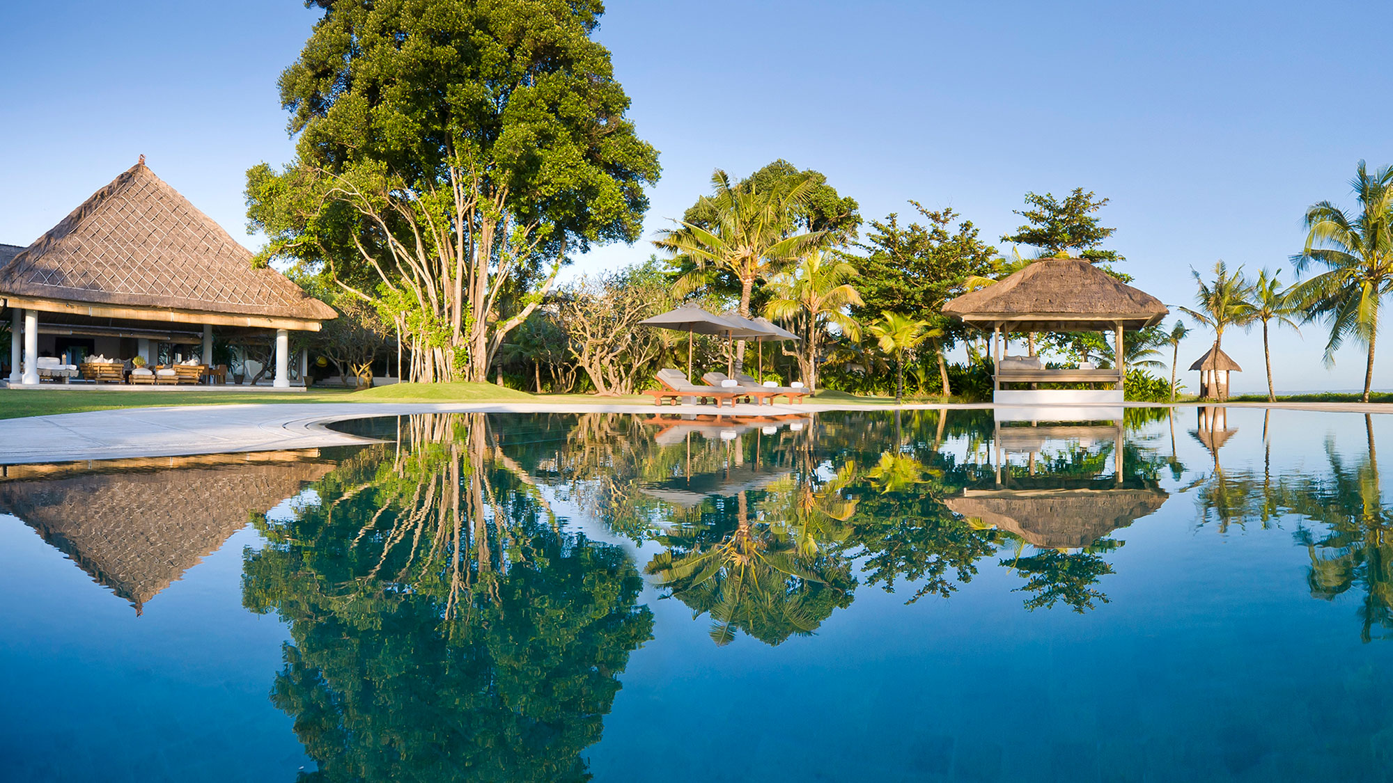Ombak Svara Villas – Commanding 100 metres of absolute beachfront and set in one and a half acres of gardens on Bali’s south-western coast, Ombak Svara Villas is in a class of its own. Much in demand as a wedding venue, this fully staffed, luxury destination villa is also ideal for young groups visiting Bali to enjoy its party vibe. The villa offers five spacious bedroom suites, generous living and entertainment areas, and a large beach-edge swimming pool.